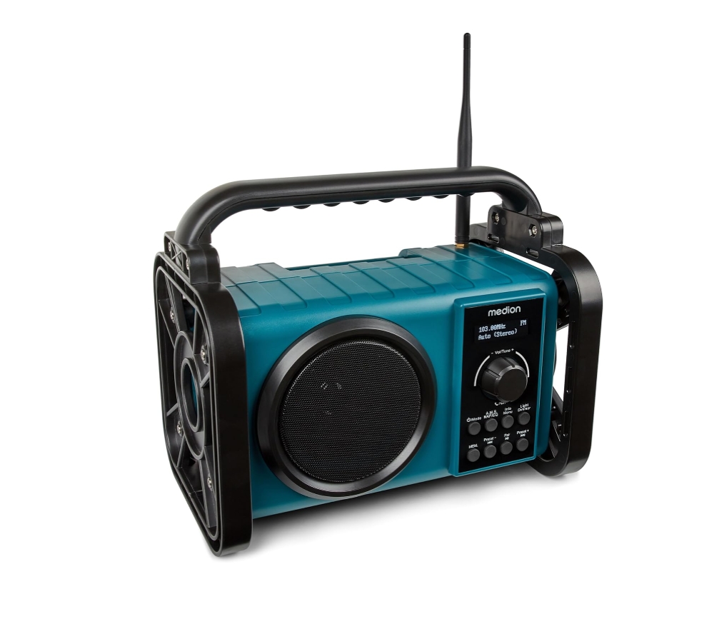 - Robuuste structuur: De MEDION E66877 is gemaakt om de moeilijke omstandigheden in bouwplaatsen te overleven. De stevige constructie zorgt voor betrouwbaarheid en duurzaamheid door de radio te beschermen tegen stoten en vallen.